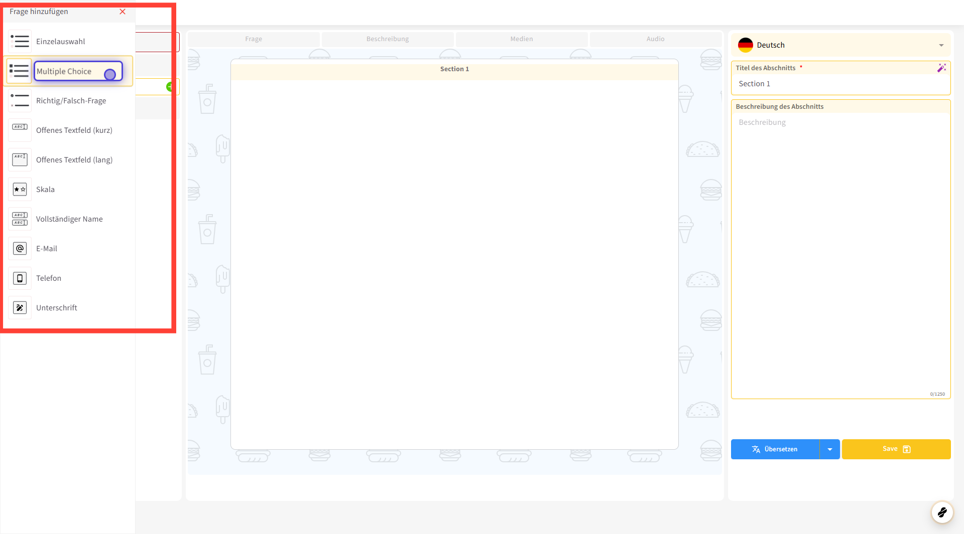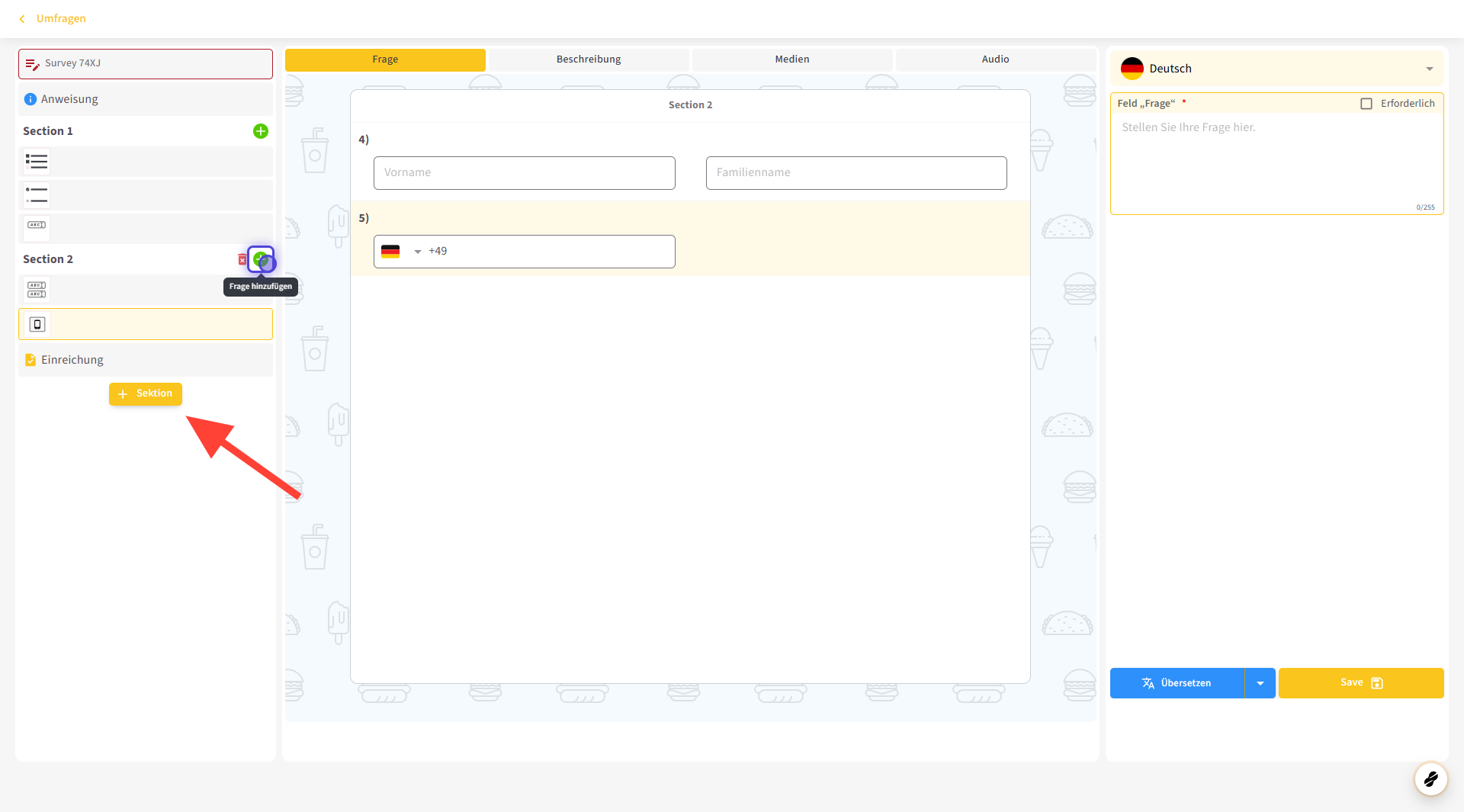 - 11. Klicken Sie auf | Frage hinzufügen (+)