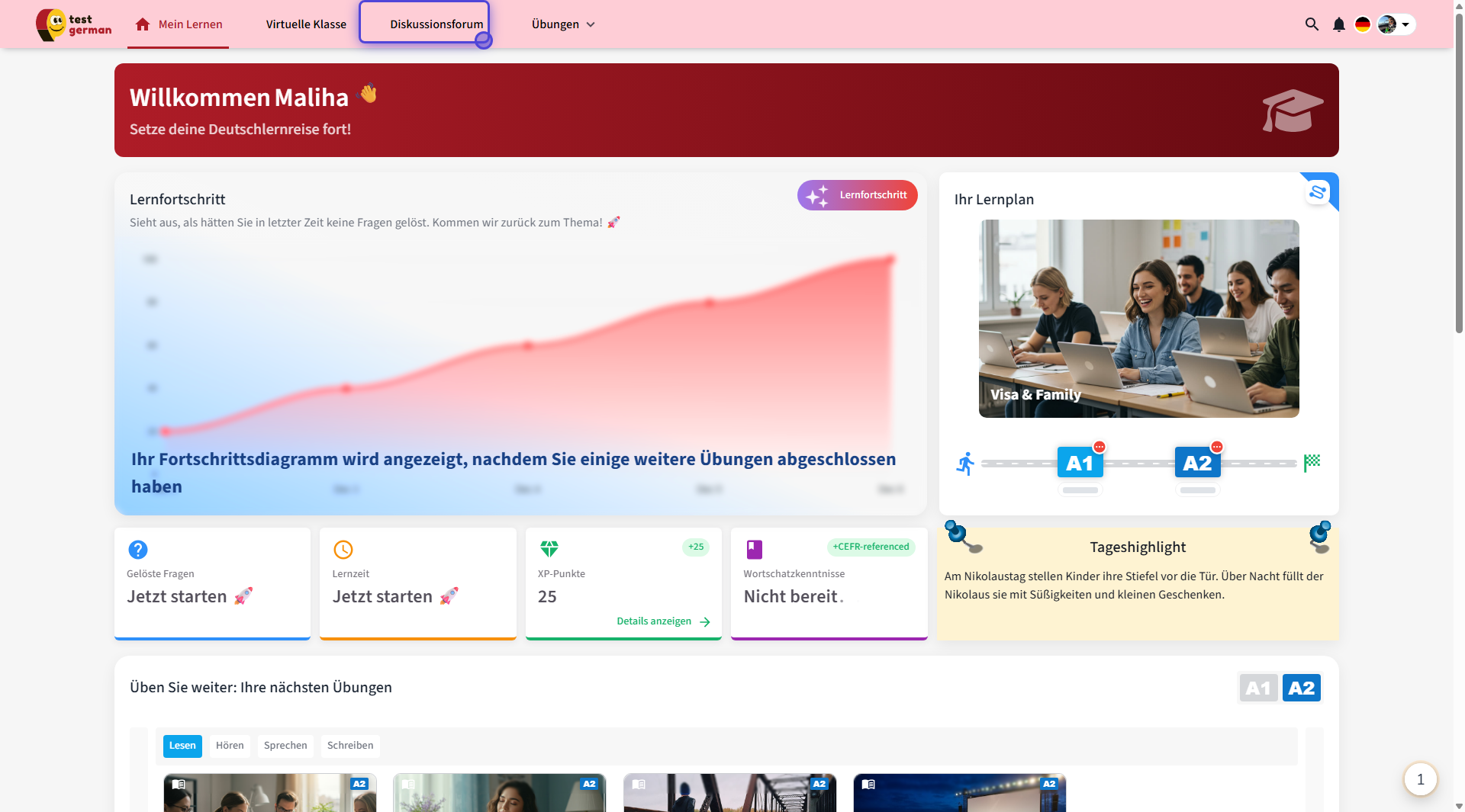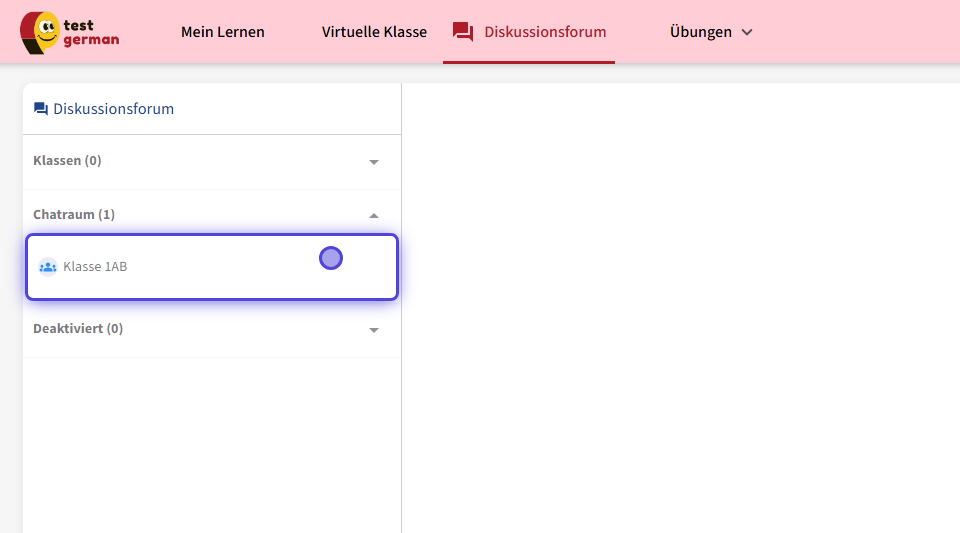 Klicken Sie einfach im Menü auf „Diskussionsforum“ und chatten Sie in den Chatrooms oder Klassenräumen , die von Ihrer Lehrkraft oder Ihrem Mentor erstellt wurden.