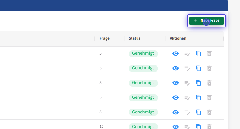 - 1. Klicken Sie auf "Neue Frage"