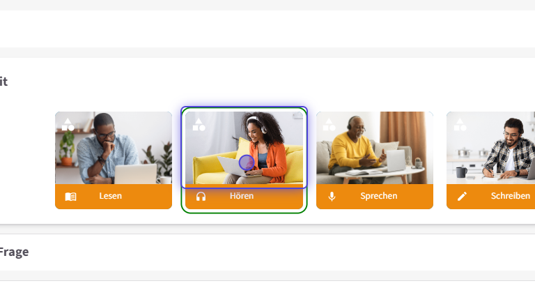 Für Höraufgaben muss bei den Sprachfertigkeiten die Option „Hören“ ausgewählt werden.