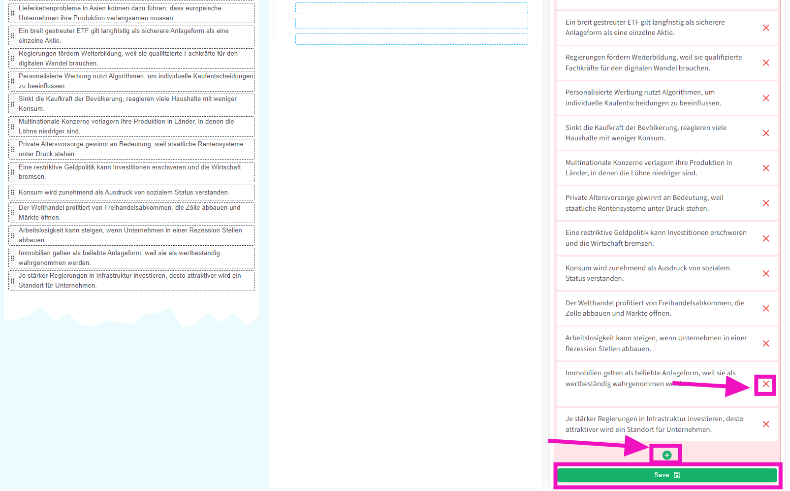 Nachdem Sie alle Fragen auf die gleiche Weise hinzugefügt haben, klicken Sie auf „Save“ und können anschließend zum nächsten Fragetyp wechseln.
