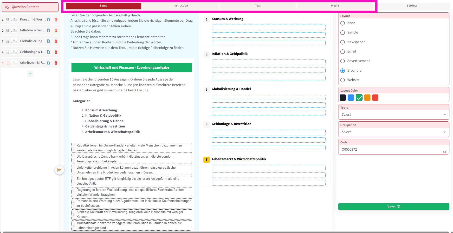 Die grundlegende Logik zur Erstellung der Fragen entspricht weitgehend dem zuvor beschriebenen Multiple-Choice-Format . In diesem Abschnitt werden daher nur die Besonderheiten dieses Fragetypen erläutert.