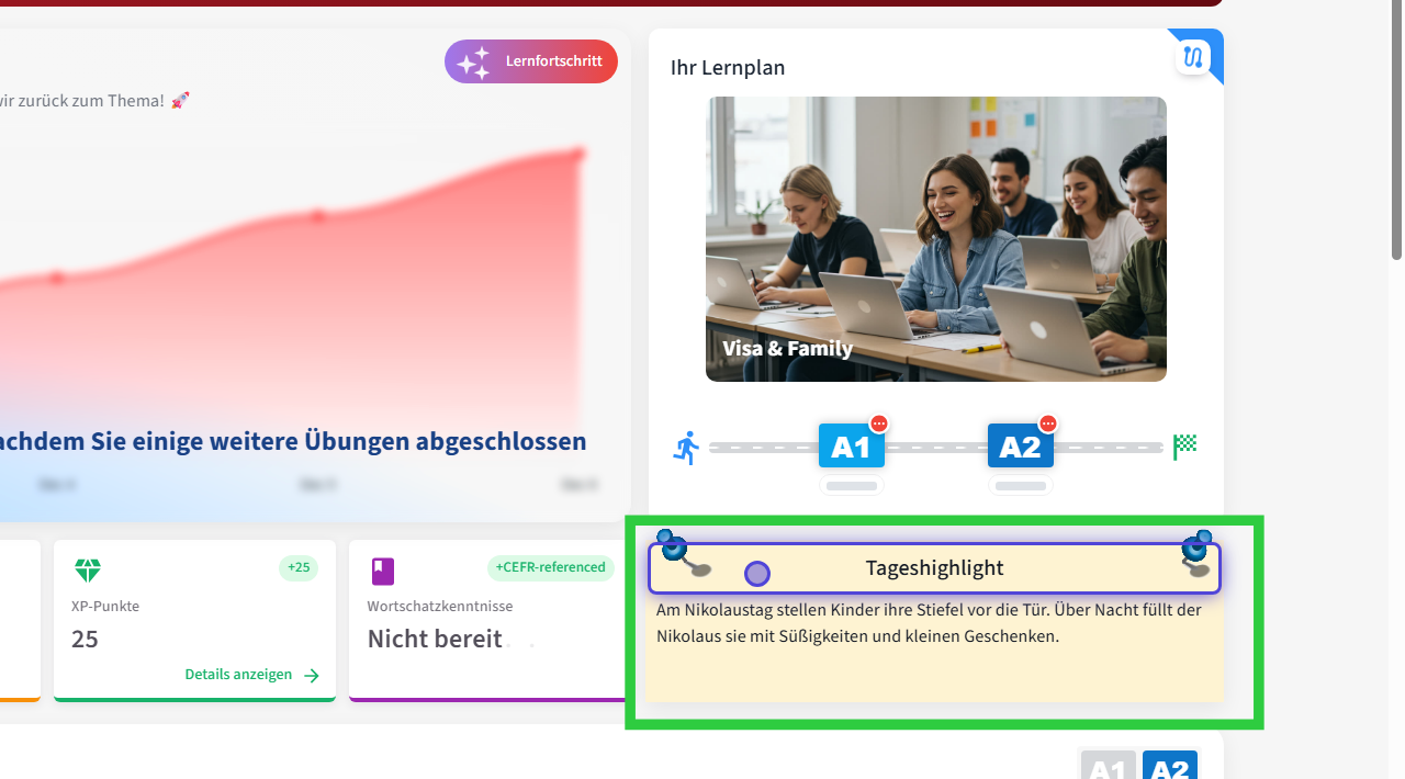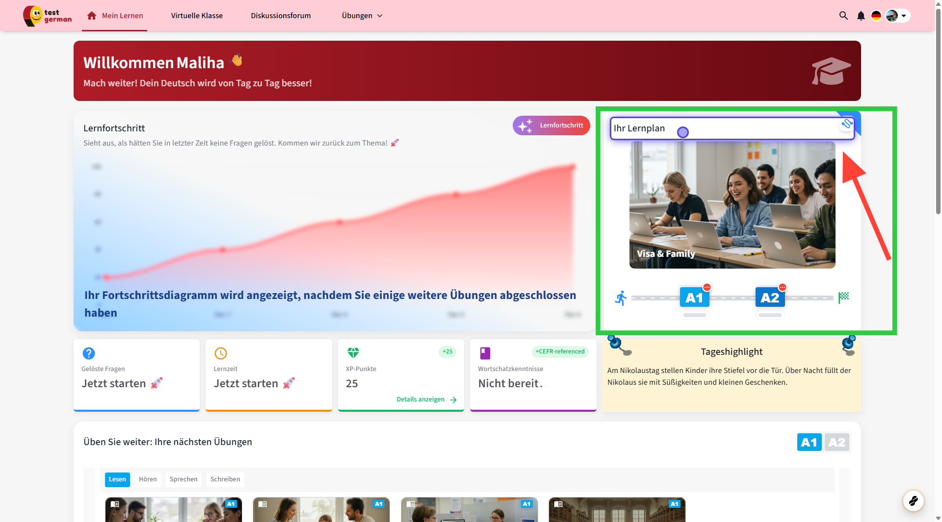 So können Sie jederzeit sehen, zu welchem Lernplan Sie gehören.