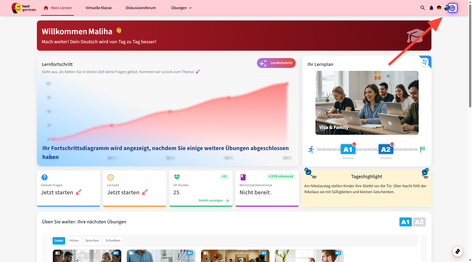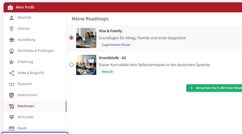 Hier können Sie die Roadmaps sehen, die Ihnen von Ihrem Kurs zugewiesen wurden.