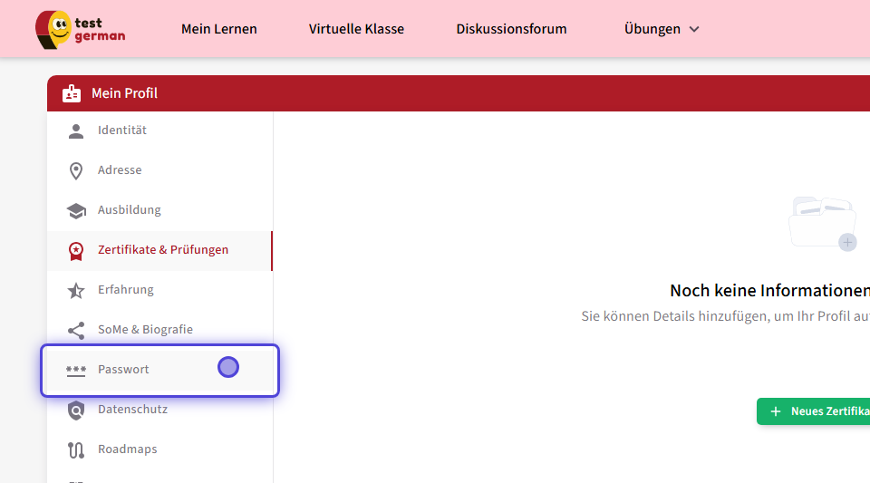 Klicken Sie für die Passwortänderung auf den Reiter „Passwort“.