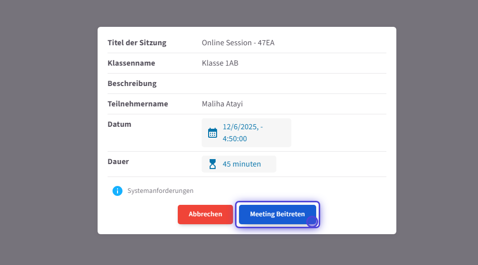 Dadurch wird eine Teilnahmeanfrage an Ihre Lehrkraft oder Ihren Mentor gesendet.